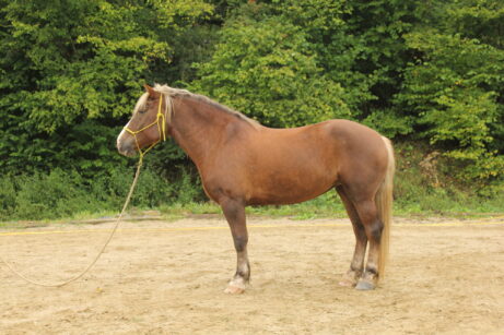 Ahojky, zdraví vás Cety. Vychovali mě ve stáji Cunkov a jako tříletou mě poslali do Hamzovy léčebny pro práci v hipoterapii. Když si pro mě přijeli, zjistila jsem, že nebudu sama. V přívěsu už stála kolegyně Bouřka. Nastal nám společně úplně jiný režim. Místo sedla jsme dostaly madla, věšeli na nás různé pomůcky a začaly jsme vozit děti. Zvykly jsme si, že na nás nejen sedí, ale i leží, klečí nebo visí, některé křičí, plácají nás a občas i tahají za všechno, co se dá. Ale naši vodiči nás pak pochválí a suchý rohlík to vždycky nakonec spraví. Teď už jsme zkušené babičky a těší nás, když můžeme rozzářit úsměvy malých človíčků při jízdě a máme rádi jejich pohlazení a hlavně jablíčka.